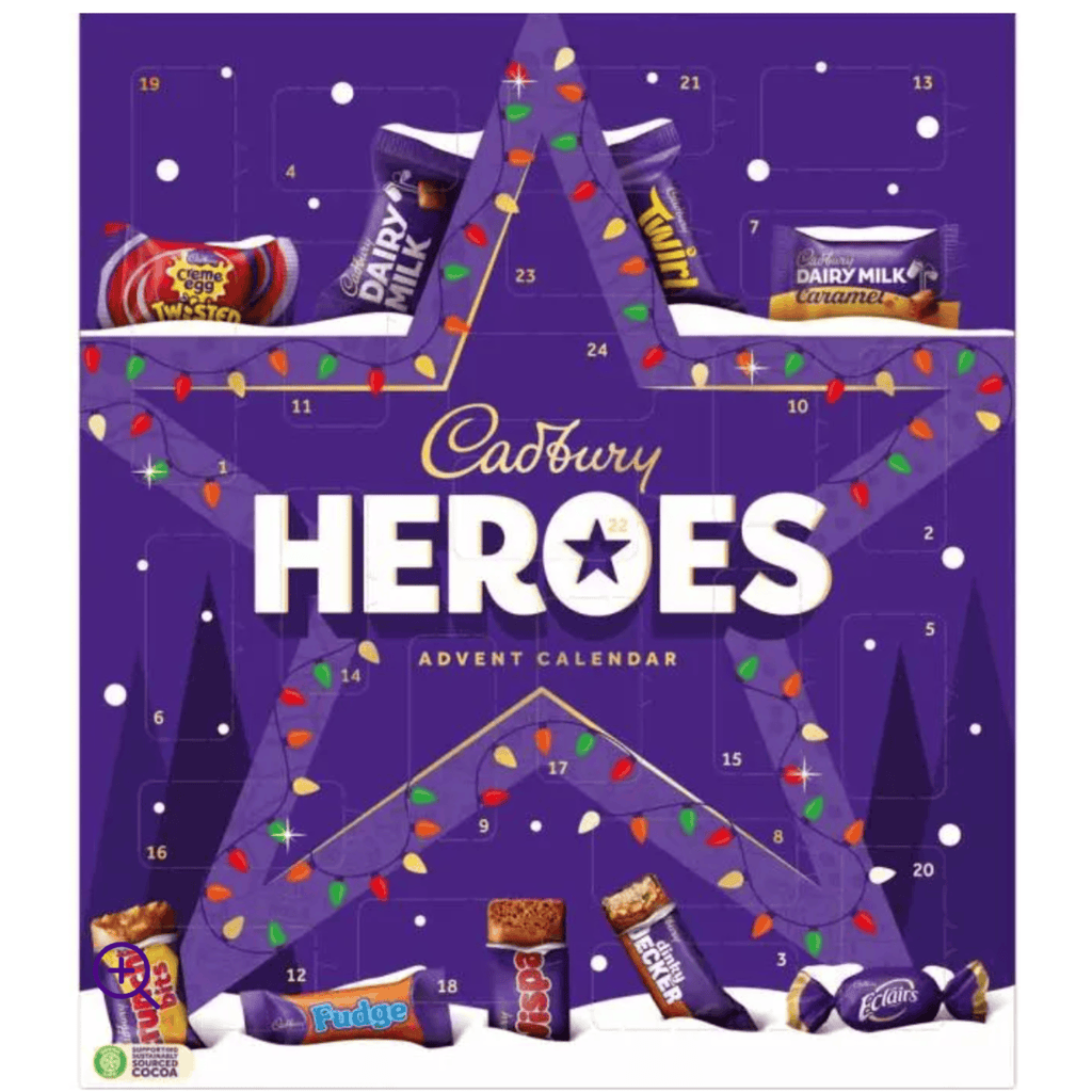 Open a little door each day in your countdown to Christmas to find a Heroes chocolate - it may be Creme Egg Twisted, Wispa, Twirl, Dairy Milk Caramel, Dairy Milk, Fudge, Crunchie Bits, Dinky Decker or Cadbury chocolate Eclairs.